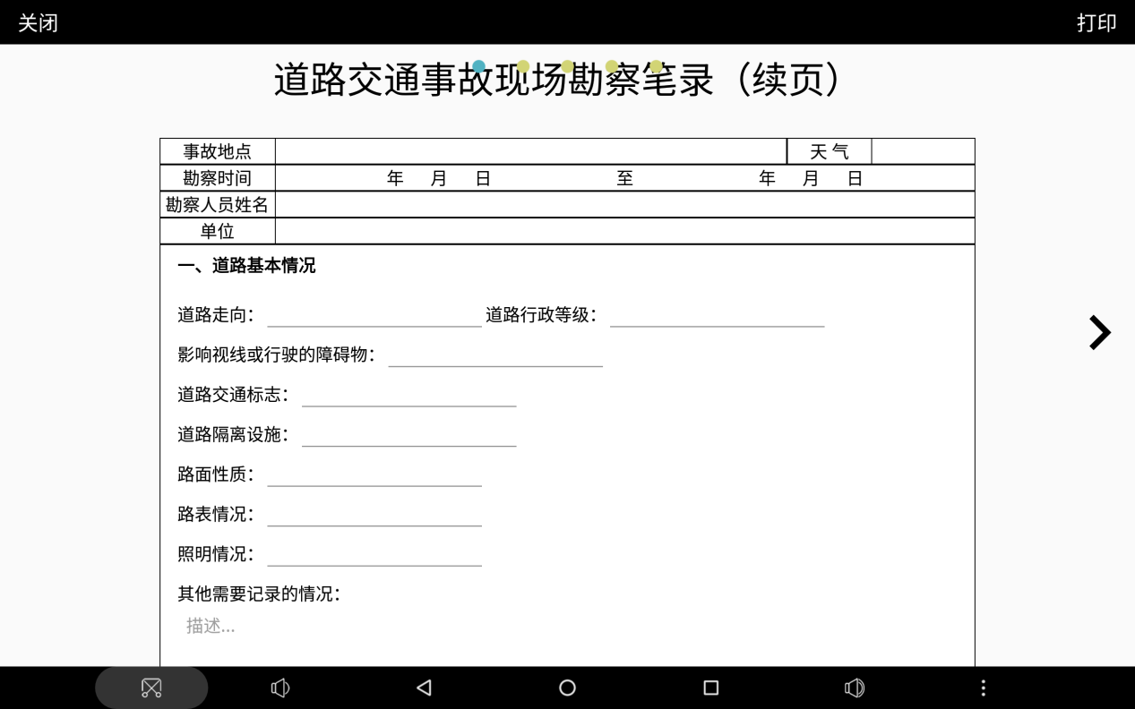 交通事故現(xiàn)場(chǎng)繪圖解決了交警在交通事故現(xiàn)場(chǎng)勘察時(shí)速度慢、效率低、信息易遺漏等問題,系統(tǒng)以簡捷、輕便、易操作、一次性成比例圖等近乎完善的人性化設(shè)計(jì),同時(shí)作為當(dāng)?shù)亟煌ㄊ鹿市畔⑾到y(tǒng)的一個(gè)組成部分,為案卷的制作、整理、統(tǒng)計(jì)等提供事故現(xiàn)場(chǎng)信息。