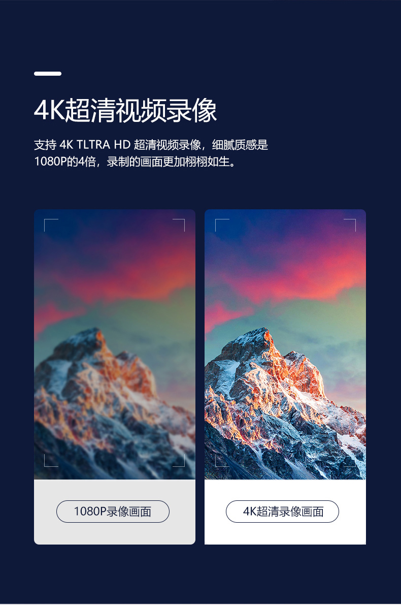 錄像視頻分辯率 4K@30fps/2K@30fps/1080P@30fps/720P@30fps