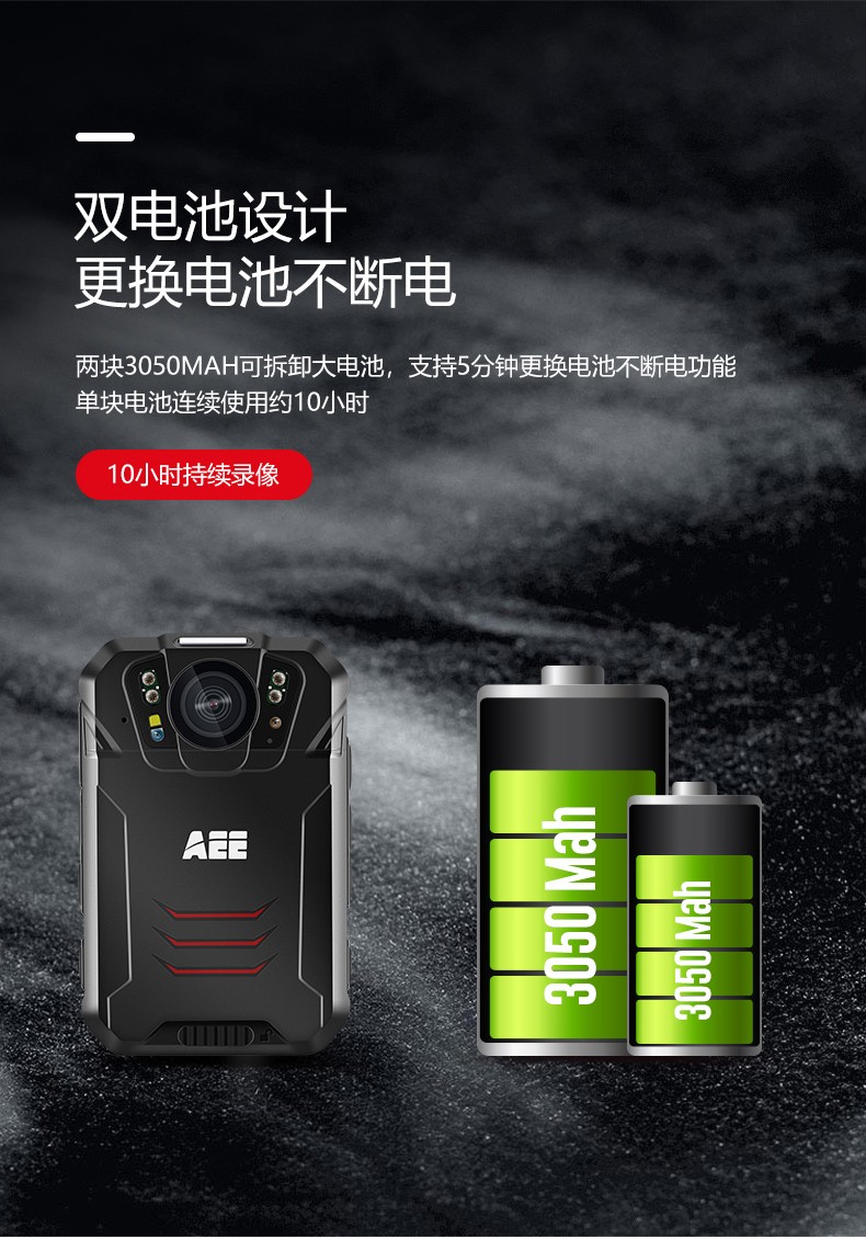 電池容量 單塊3050mAh電池,單塊電池錄像時間≥10小時